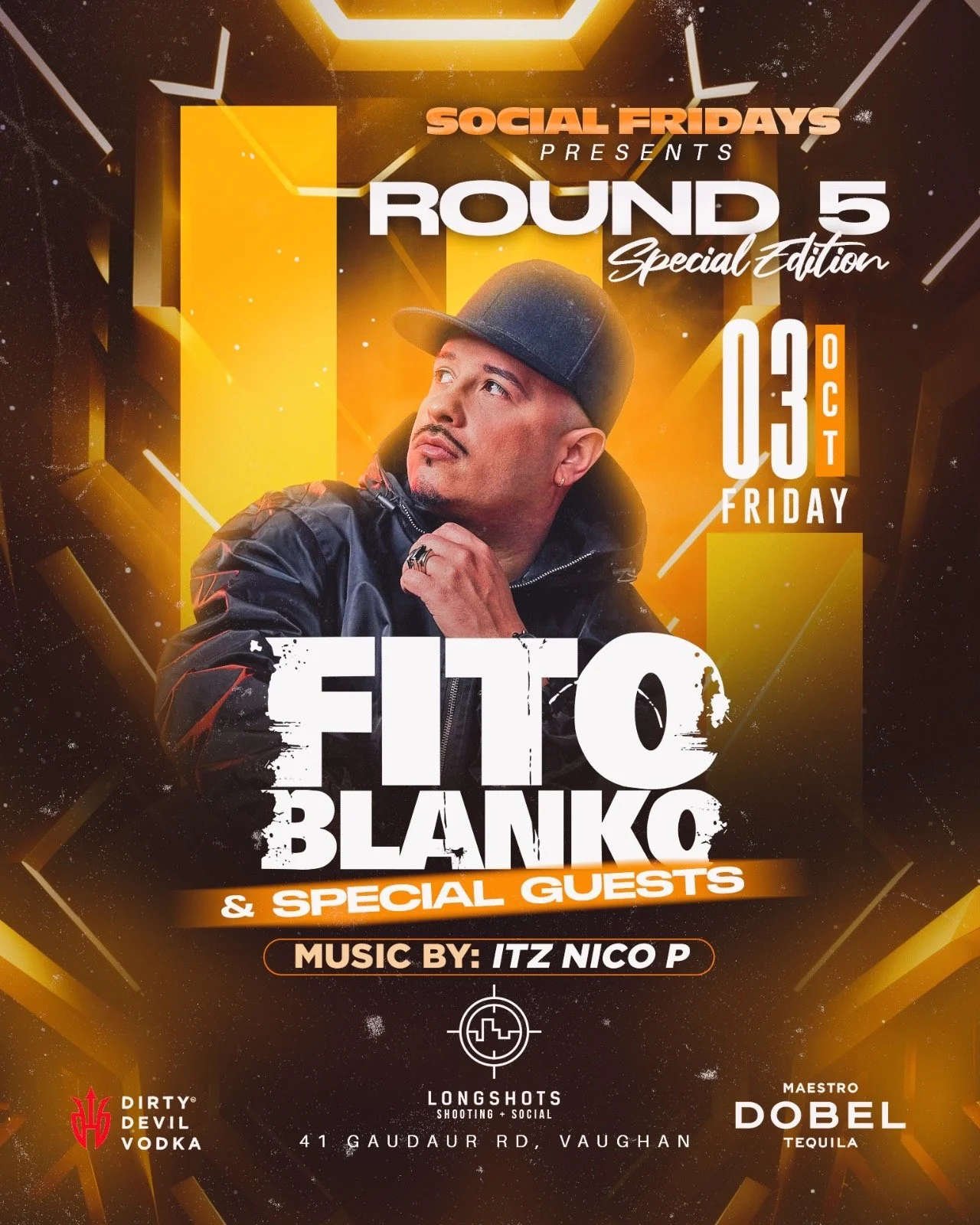 Get ready for an unforgettable night as Fito Blanko takes over Longshots in Vaughan for a rare, intimate performance. This isn't your typical concert — it's a chance to connect with the artist in a close-quarters setting where every lyric, every note, and every moment counts.